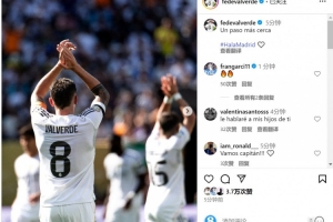 巴尔韦德为皇马踢满全场,赛后他在社交媒体上晒出谢场照片,配文:“又近一步。”